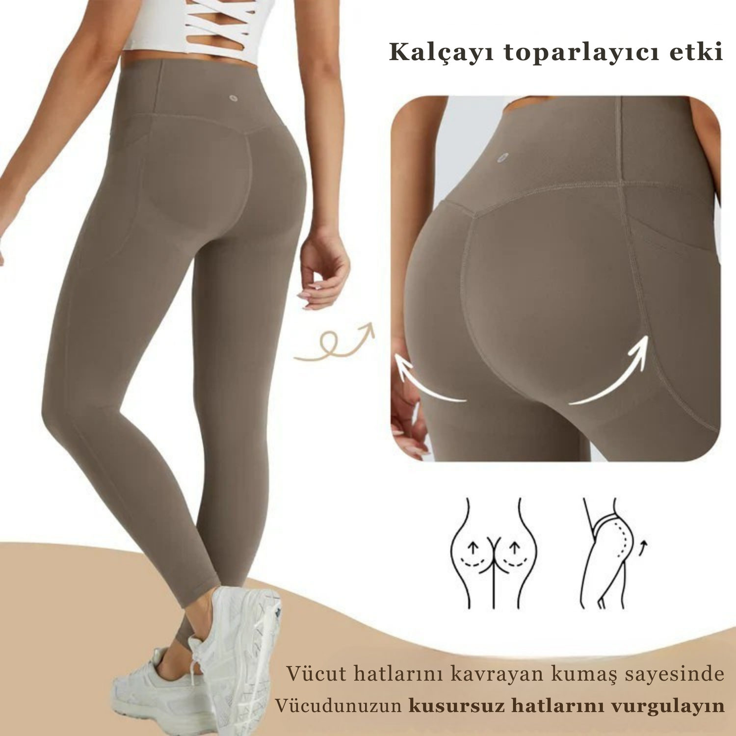 👗Bu taytlar, poponuzu daha kalkık ve şekilli gösterir, daha dolgun ve belirgin bir görünüm sağlar.
