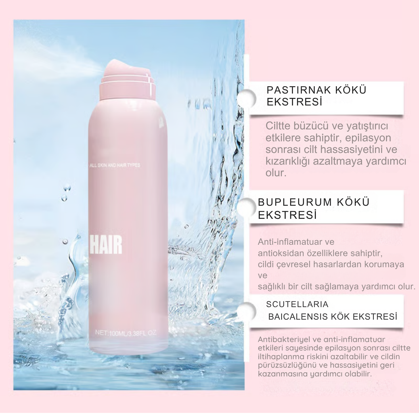 Hayır — sprey sadece ince ve görünmesi güç tüyleri geçici olarak belirgin hâle getirir; kılın yapısını, rengine veya yeniden çıkış hızına müdahale etmez.